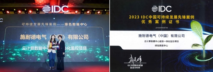 獲獎(jiǎng)證書及施耐德電氣現(xiàn)場(chǎng)領(lǐng)獎(jiǎng)畫面 當(dāng)前市場(chǎng),在“雙碳”目標(biāo)指引下,可持續(xù)發(fā)展已是經(jīng)濟(jì)發(fā)展的主旋律,節(jié)能減碳成為明確的發(fā)展趨勢(shì)。與此同時(shí),隨著數(shù)字中國(guó)的加速建設(shè),數(shù)據(jù)中心在中國(guó)市場(chǎng)飛速發(fā)展。在這一大環(huán)境下,數(shù)據(jù)中心產(chǎn)業(yè)的數(shù)字化綠色可持續(xù)發(fā)展已成為關(guān)注焦點(diǎn),如何推進(jìn)數(shù)據(jù)中心能源管理的智能化改造,在確保高效運(yùn)維管理、穩(wěn)定運(yùn)行的同時(shí),實(shí)現(xiàn)節(jié)能減碳,是當(dāng)前數(shù)據(jù)中心產(chǎn)業(yè)面臨的重點(diǎn)挑戰(zhàn)。 在入圍2023 IDC中國(guó)可持續(xù)發(fā)展先鋒案例名單的云計(jì)算數(shù)據(jù)中心能碳一體化監(jiān)控項(xiàng)目實(shí)踐案例中,施耐德電氣為客戶的兩個(gè)新建項(xiàng)目搭建了四個(gè)預(yù)模塊一體化監(jiān)控系統(tǒng),實(shí)現(xiàn)了各數(shù)據(jù)中心預(yù)模塊的所有電氣設(shè)備與系統(tǒng)、暖通空調(diào)系統(tǒng)、環(huán)境監(jiān)控系統(tǒng)和IT與網(wǎng)絡(luò)設(shè)備的集中監(jiān)控,達(dá)成多維度的集中管理和精細(xì)化運(yùn)行管理,并確保系統(tǒng)7*24小時(shí)穩(wěn)定運(yùn)行,保障其長(zhǎng)期可靠運(yùn)營(yíng)。 以客戶需求為導(dǎo)向,施耐德電氣基于EcoStruxure™架構(gòu)與平臺(tái),構(gòu)建了覆蓋互聯(lián)互通的產(chǎn)品、邊緣控制以及應(yīng)用、分析與服務(wù)三層架構(gòu)的數(shù)據(jù)中心一體化監(jiān)控平臺(tái),部署了包含PLC控制成套柜、PAS 700網(wǎng)關(guān)、各類傳感器和Power Operation(PO)電力監(jiān)控系統(tǒng)、EcoStruxure POA-EM 配電運(yùn)營(yíng)顧問(wèn)系列軟件-能碳管理應(yīng)用(POA-EM)和Power Advisor (PA)電力顧問(wèn)等在內(nèi)的軟硬件產(chǎn)品,助力該數(shù)據(jù)中心實(shí)現(xiàn)基礎(chǔ)設(shè)施強(qiáng)弱電一體化監(jiān)控及精細(xì)化運(yùn)營(yíng)管理。